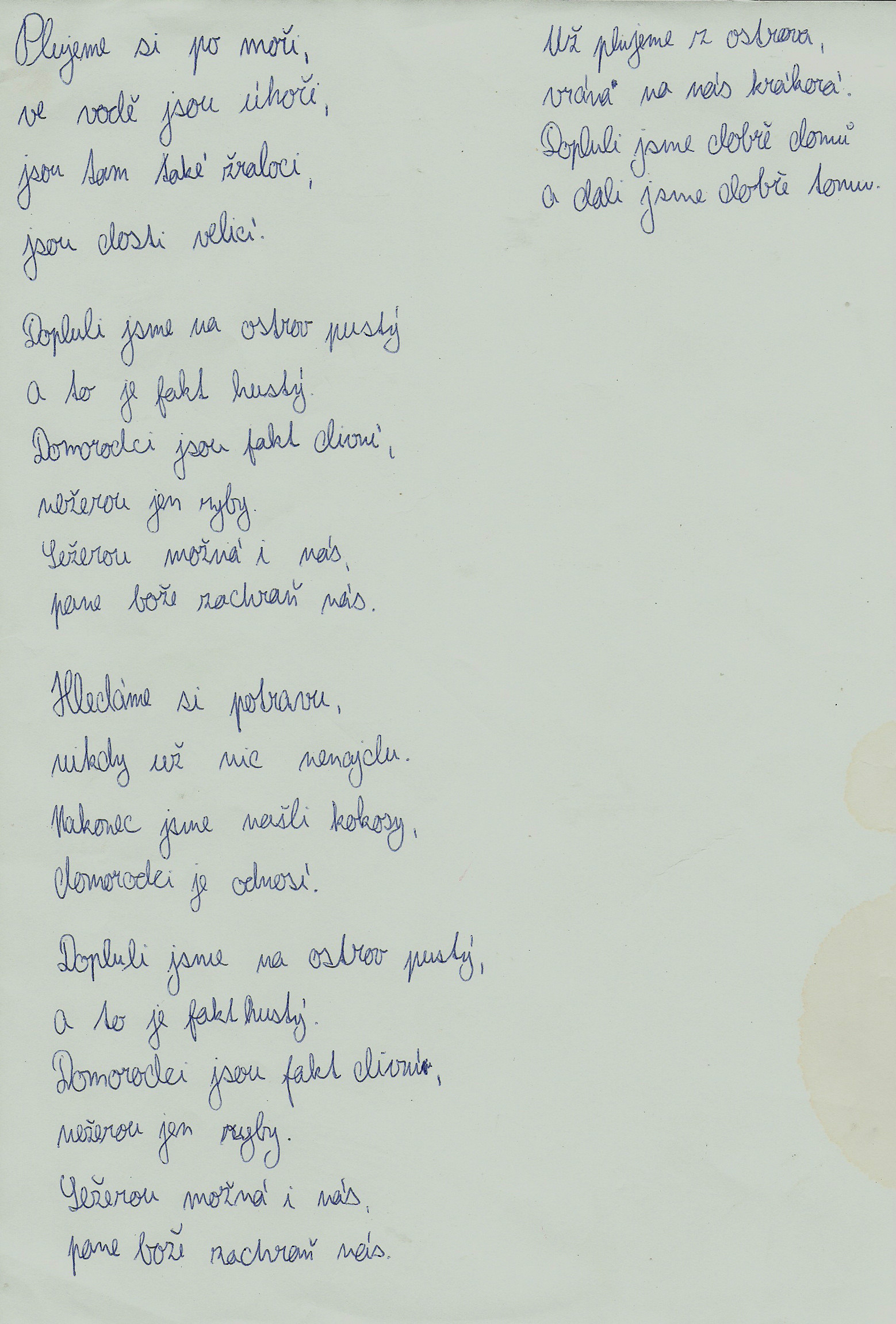 Píseň oddílu Rybí prsty, který celý týden vedli Radík a Saša
